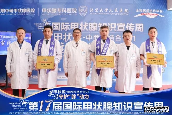 模式的创新、甲状腺疾病诊疗新进展的推进都需要榜样力量,为了引领甲状腺健康知识的传播,让更多人了解甲状腺、重视甲状腺、保护好甲状腺,本次活动现场授予昆明中研甲状腺医院董方武主任、范兆动主任、郑贤东主任“国际甲状腺知识宣传周宣传大使”荣誉称号,大家将肩负着这份责任与使命,共同推动甲状腺健康事业迈向更高水平!
