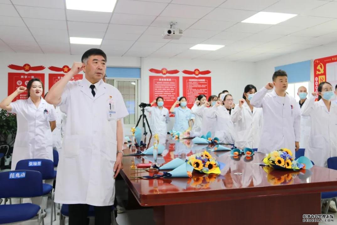 最庄严的时刻莫过于全体医师宣誓环节,在罗奇院长的带领下,全体医师高举右拳庄严宣誓:“我志愿献身医学,恪守医德,精益求精……”铿锵誓言响彻会场,展现了中研医师团队“敬佑生命、救死扶伤”的坚定信念。