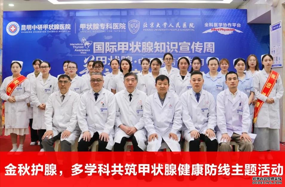 2025年9月13日,由昆明中研甲状腺医院、北京大学人民医院甲状腺疾病联合诊疗中心联合主办的“金秋护腺,多学科共筑甲状腺健康防线”主题活动在昆明圆满落幕。本次活动以“科学防治、全程管理”为核心,汇聚甲状腺领域多学科专家力量,通过科普讲座、会诊咨询、援助减免等形式,为市民送上了一场权威、实用的健康盛宴。